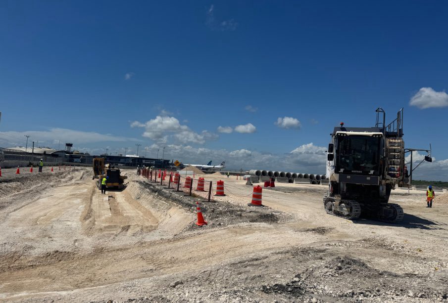 Quienes transitan hoy por el entorno del aeropuerto pueden observar maquinaria pesada y equipos de gran escala en operación, ejecutando trabajos de drenaje, nivelación y excavación en la futura plataforma de la terminal. Sin embargo, el avance más crítico se desarrolla bajo tierra, donde decenas de perforaciones e inyecciones de concreto preparan el suelo que soportará la nueva infraestructura. En esta etapa, el contratista VINCI Construction Grands Projets trabaja en cinco frentes de obra simultáneos, alcanzando un 60% de avance en perforaciones y un 40% en inyecciones en el área de la terminal, con finalización prevista para finales de mayo.