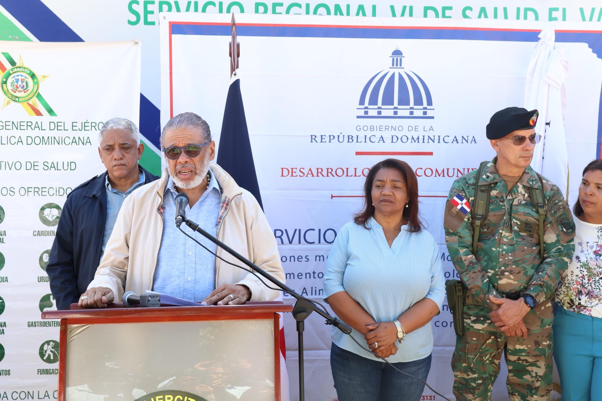 El operativo de salud fue supervisado por el titular de la Dirección General de Desarrollo de la Comunidad, doctor Modesto Guzmán, y el mayor general, Jorge Iván Camino Pérez, comandante general del Ejército de República Dominicana, quienes se hicieron acompañar de la gobernadora de San Juan, Ana María Castillo Mateo; el director de la Junta Distrital de Jínova, Aneurys Cordero; la directora del centro educativo, Clara Ureña; así como directores y otros colaboradores de la DGDC.