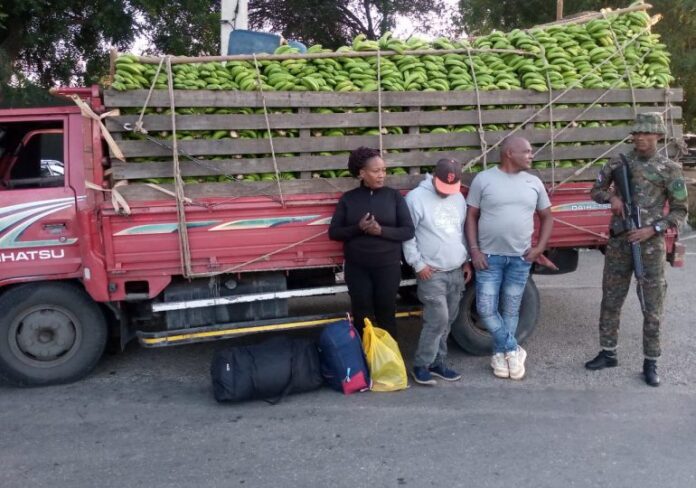 Dos de los detenidos transportaban una nacional haitiana en estatus migratorio irregular camuflada en bananos